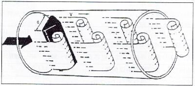 在流體中設置三角柱型旋渦發(fā)生體,則從旋渦發(fā)生體兩側(cè)交替地產(chǎn)生兩列有規(guī)則的旋渦,這種旋渦稱為卡門旋渦,如下圖所示,旋渦列在旋渦發(fā)生體下游非對稱地排列。