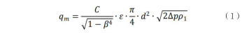 式(1)中:qm--質量流量;C一流出系數;?一氣體可膨脹系數;β一直徑比,B=d/D;d-工作條件下節流件的孔徑;D-工作條件下上游管道內徑;△p-差壓;ρ1一上游流體密度。