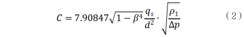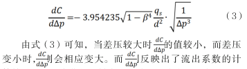 式(2)中:C一流出系數;β一直徑比;/=d/D;qs一標準流量值;d一節流件的孔徑;ρ1一水的密度;△p-測量差壓值。
