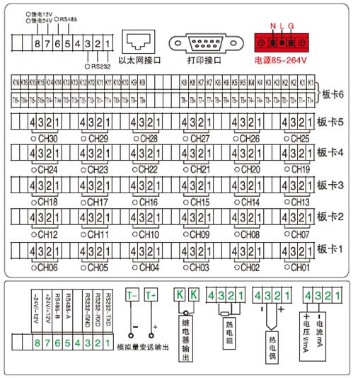 觸屏真彩無紙記錄儀有1~36路萬能輸入通道(可組態(tài)選擇輸入:標準電壓、標準電流、